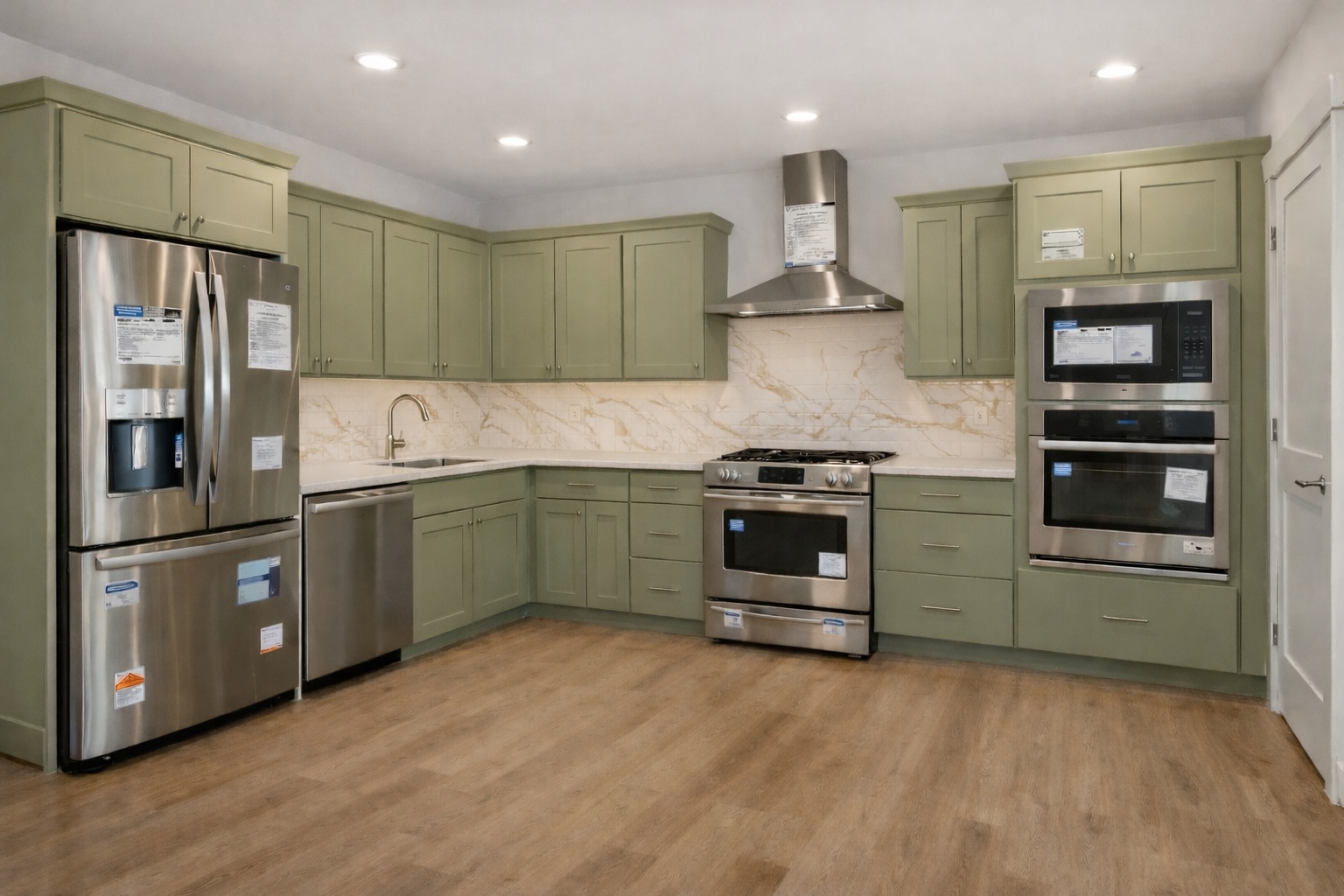 We removed the island to create a more open and functional layout. Since the sink and plumbing were originally installed in the island, we relocated all plumbing lines and moved the sink to the wall area. This required rerouting the water supply and drain lines to fit the new kitchen design.